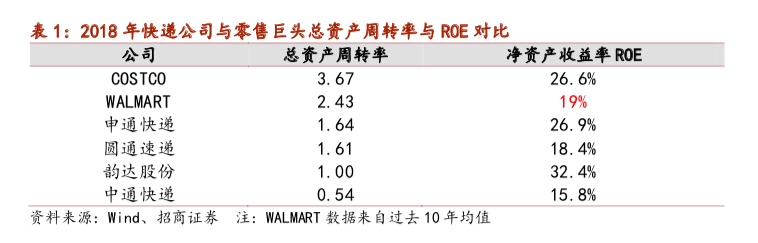 与零售巨头对比,当前快递公司总资产周转率还有待加强,随着市场集中度进一步提升,龙头公司运营能力改善,未来快递企业的长期股东回报可期。