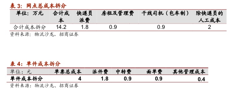 当前中通、韵达以优秀的成本控制换取了对网点较大的让利空间,构筑了较深护城河。