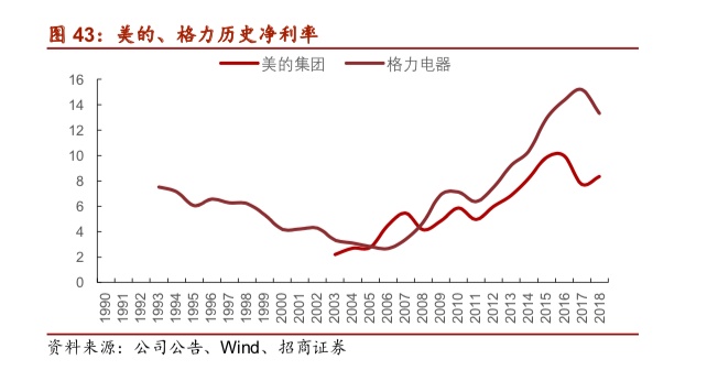 而伴随着消费升级的浪潮出现,企业积极改善产品结构,不断推出高附加值产品,高能效、智能家电开始快速普及,公司历史净利率走向“微笑曲线”的右端。