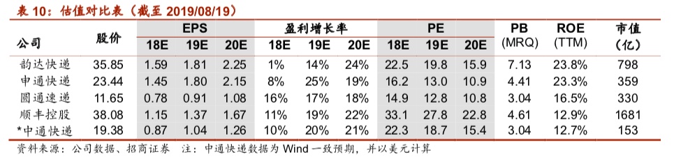 我们能够确认快递行业中长期的增长(19年增速超过20%,中长期维持GDP的两倍),但竞争格局和定价权的缺失导致企业盈利(现金流)预测困难。
