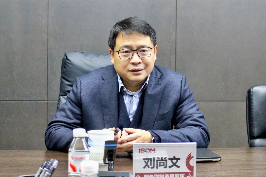 刘尚文院长详细介绍了服务型制造研究院的发展定位、核心业务布局、产学研协同机制以及在政策研究、标准制定、技术攻关、成果转化等方面的工作进展。他表示,研究院作为聚焦服务型制造领域的专业研究机构,始终以推动先进制造业与现代服务业深度融合为核心目标,持续探索数智技术与制造服务业的融合应用路径。他提到,当前产业发展正处于数智化转型的关键阶段,研究院正依托自身技术与资源优势,搭建产业协同平台,助力企业实现转型升级。他认为,浙江省在数字经济、智能制造领域基础扎实,双方具备广阔的合作空间。他希望以此次调研为契机,与浙江省数智技术与服务联合会深化对接,在平台共建、课题研究、产业服务、项目落地等方面开展全方位合作,共同推动区域服务型制造产业高质量发展。