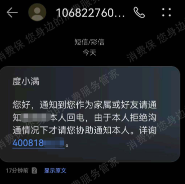 除了上述案例提到的第三方催收,消费者齐女士(化名)投诉中称,度小满官方客服在她本人保持电话畅通且一直接听的情况下,擅自联系其通讯录里的其他联系人。这种“爆通讯录”行为,严重侵犯借款人隐私权。