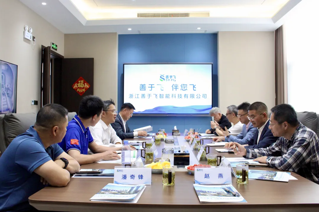 单永华详细介绍了企业发展历程、核心资质、业务体系与市场布局。他表示,善于飞专注低空经济服务,聚焦无人机全产业链应用,拥有CAAC官方认证训练资质,面向社会提供规范专业的无人机操控培训,同步推进共享无人机租赁柜投放、高空清洗、封闭环境巡查、航拍测绘、农林植保、系留应用、设备代理等多元化业务,构建“培训+应用+服务+生态”的一体化运营体系。他提到,公司以“上善若水、和谐共赢”为理念,以创新普惠、专业守正、利他共生为价值导向,致力于让无人机技术更好服务社会、惠及大众。他认为,低空经济正迎来政策与市场双重机遇,数智技术与文旅、体育、城市服务等场景深度融合,将催生广阔市场空间。他希望以此次调研为契机,加强与两大联合会的对接协作,借力平台资源、行业资源与技术资源,加快技术创新、场景拓展与品牌提升,助力浙江低空经济高质量发展。