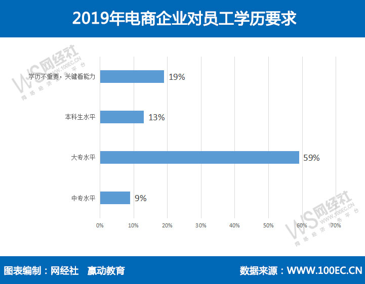 数据解读电商是一个变化快、实践性要求比较高的行业,有持续学习能力人有更大机会。从调查数据来看,大专学历的员工仍然占主导。但部分岗位的学历要求会有一定的提高,和去年相比,本科学历要求的比例上升了4%。