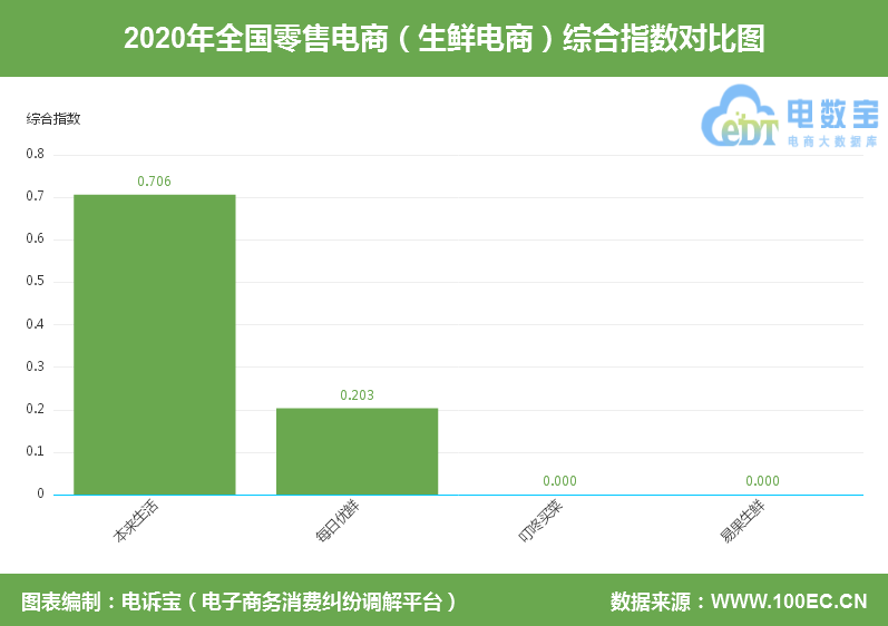 据“电数宝”数据显示,本来生活获“谨慎下单”评级;每日优鲜、叮咚买菜、易果生鲜平台均获“不建议下单”评级,在受理平台移交的用户投诉,平台反馈率、回复时效性、用户满意度相对较低,需积极受理第三方移交督办的全国各地用户投诉线索并第一时间相应、及时反馈努力提高售后服务水平和口碑。
