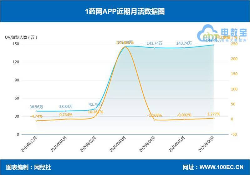 从月活人数来看,1药网稳居第一,月活数达148.45万人,康爱多、健客网分别为98万人、3.66万人。