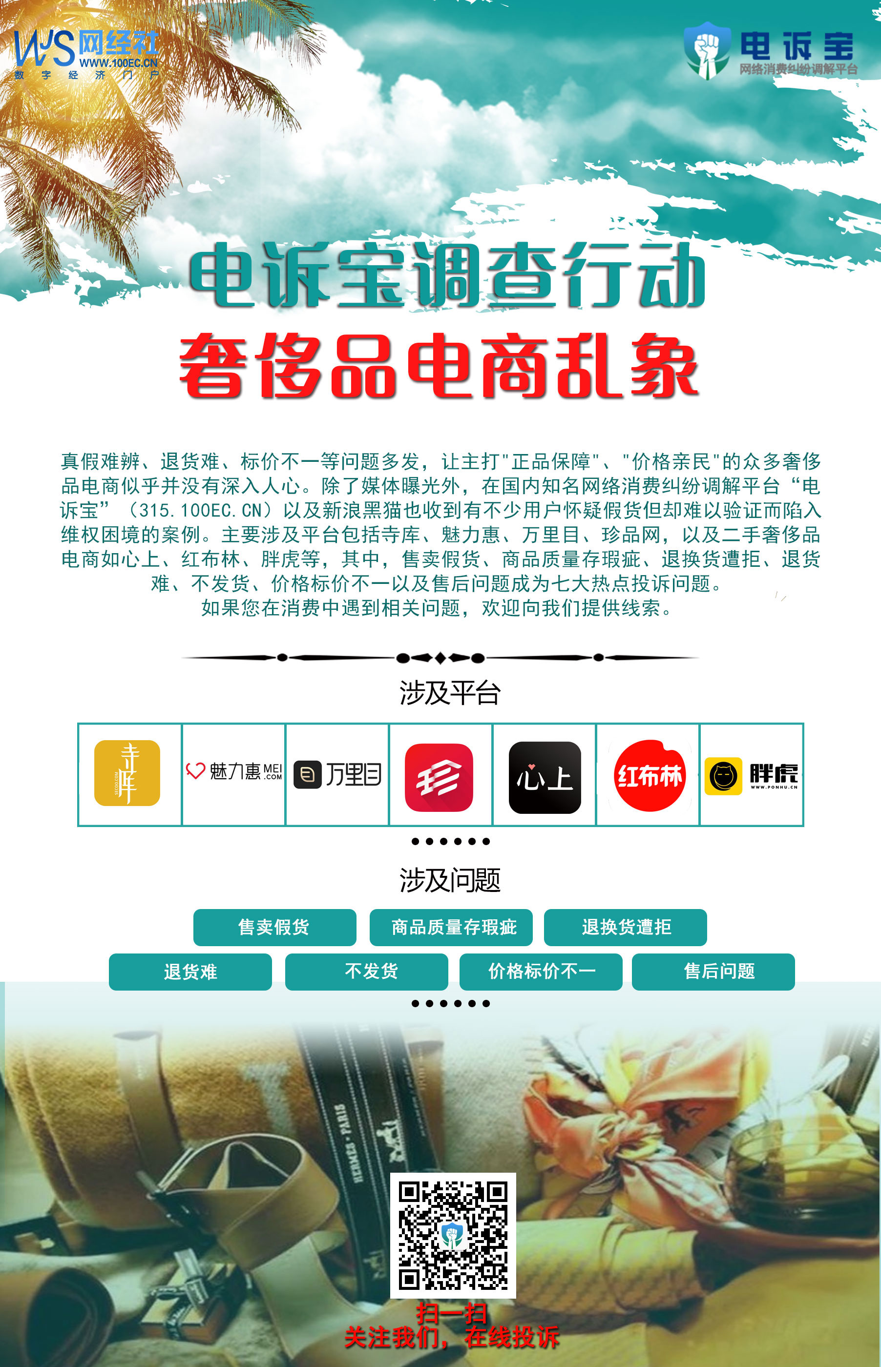 除此之外,上线未满百天的“万里目”遭密集用户投诉,曝出“涉嫌售卖假冒产品”“退货难”“客服不作为”等消费问题。此前,考拉海购加拿大鹅事件、雅诗兰黛事件曾引发业内对于真假货源的讨论,而从另一方面讲,奢侈品电商也是跨境消费的一种形式。因此,网经社电子商务研究中心网络零售部主任、高级分析师莫岱青也表示,跨境奢侈品电商要注意两方面:一是供应链上有保障,对产品质量需要严格把控;二是价格优势是否能长期持续。