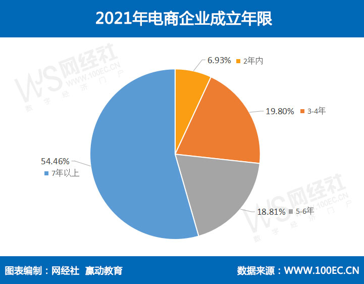 被调研企业样本中,5年以上企业比例达到73.27%。这类企业不管是抗风险方面,还是电商运营能力方面,都具有较大优势。