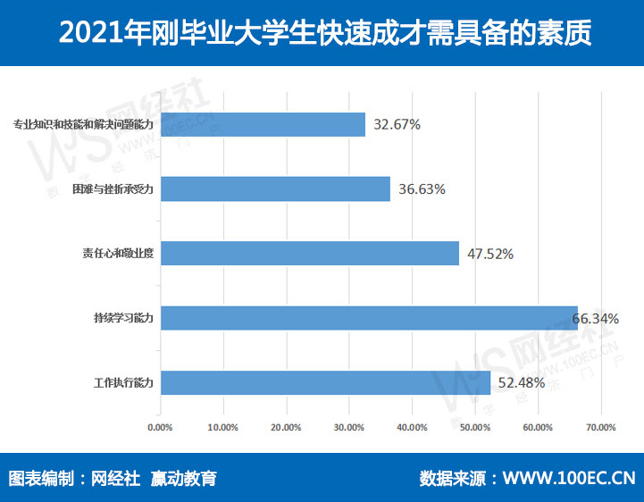 学习能力、执行能力和责任心敬业度排前三名,也说明了电商企业对刚毕业大学生的核心要求。试想,心态好、爱学习、行动还有结果的员工,哪个企业不喜欢?