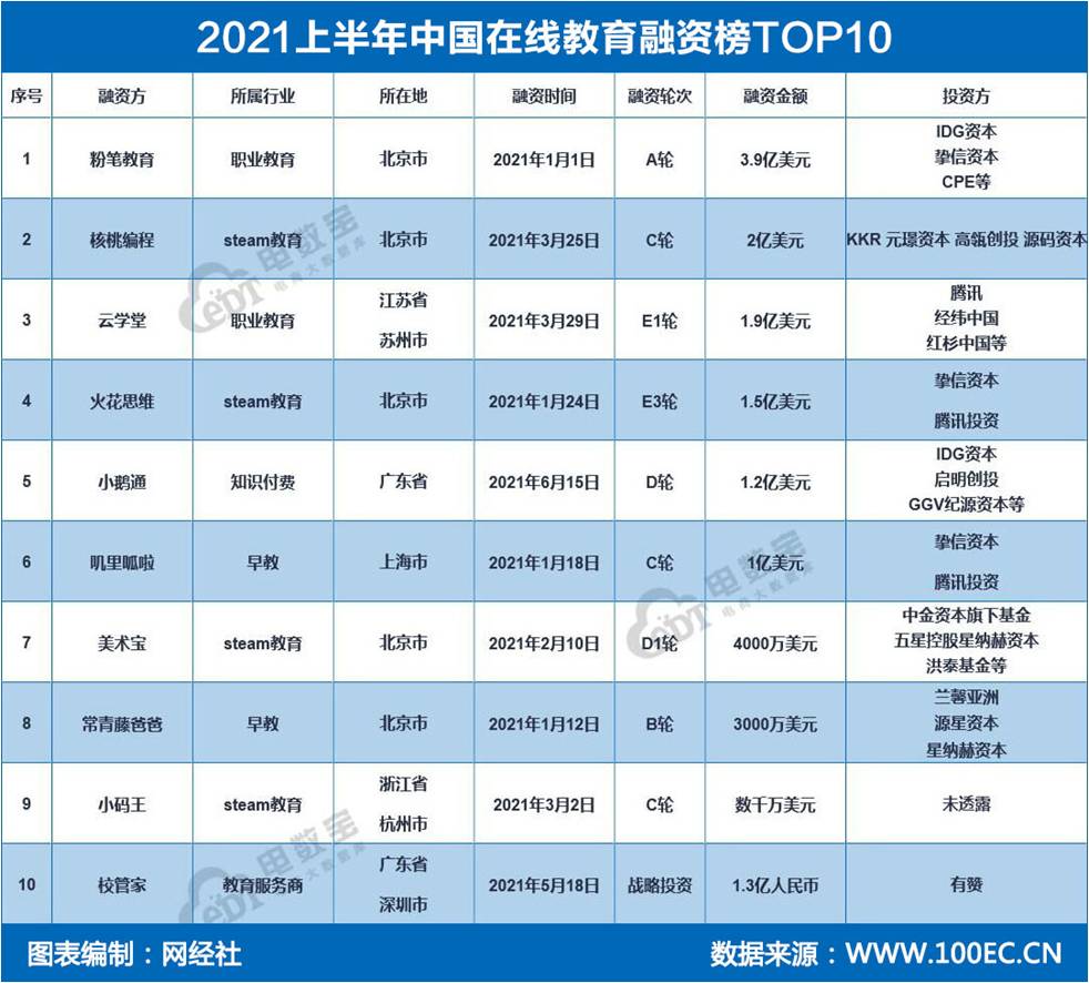 中文科技资讯:网经社:《2021年(上)中国在线教育投融资数据报告》