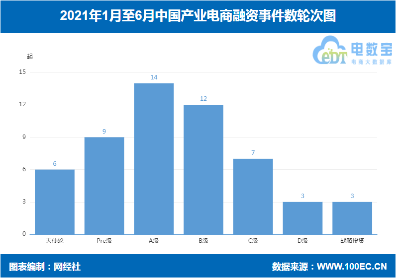据网经社“电数宝”数据显示 ,上半年产业电商融资事件数达56起,同比去年同期40起上升40%;融资总金额达150.6亿元,同比去年同期41.1亿元上升266.42%。