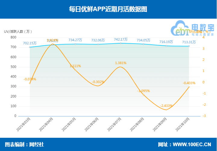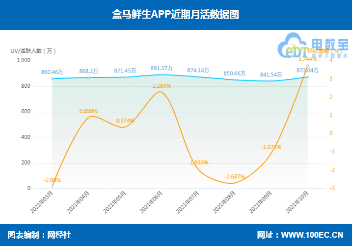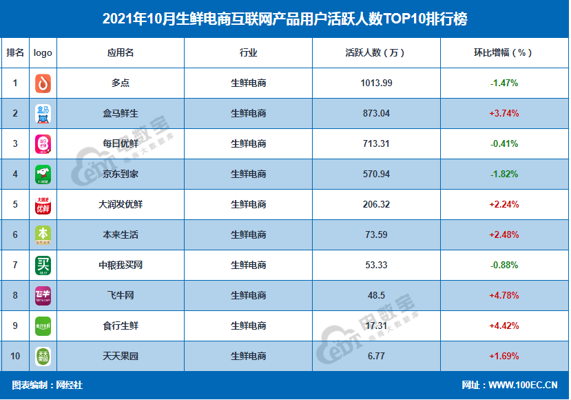 据网经社“电数宝”(DATA.100EC.CN)电商大数据库显示,10月份生鲜电商APP活跃用户数基本上升。