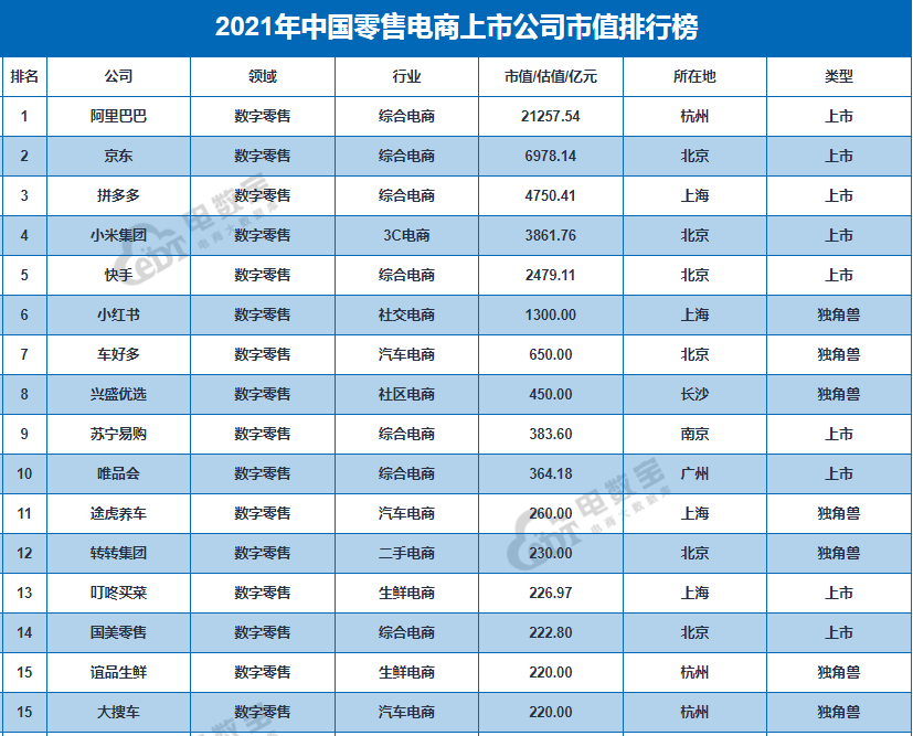 榜单显示,零售电商中,叮咚买菜、每日优鲜、百果园进入“百亿俱乐部”,分列第13位、第15位、第27位。