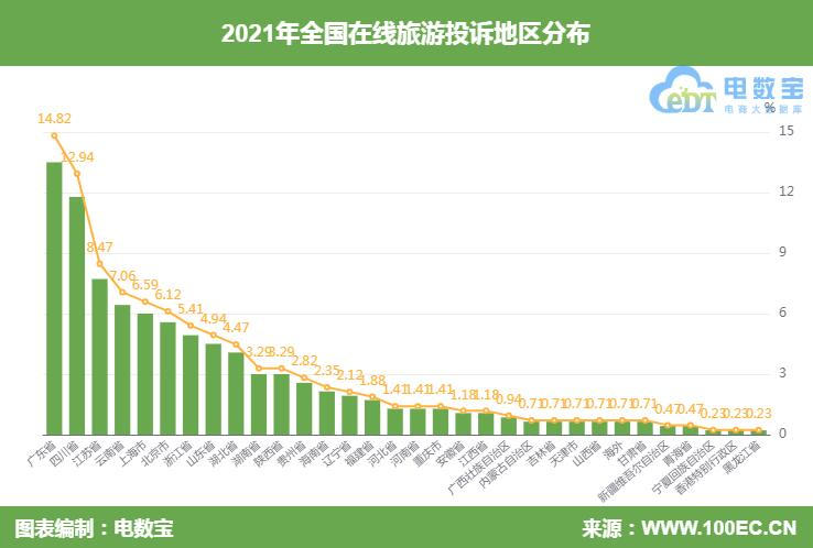 同时,“电诉宝”受理投诉用户聚集地区TOP20依次为广东省(14.82%)、四川省(12.94%)、江苏省(8.47%)、云南省(7.06%)、上海市(6.59%)、北京市(6.12%)、浙江省(5.41%)、山东省(4.94%)、湖北省(4.47%)、湖南省(3.29%)、陕西省(3.29%)、贵州省(2.82%)、海南省(2.35%)、辽宁省(2.12%)、福建省(1.88%)、河北省(1.41%)、河南省(1.41%)、重庆市(1.41%)、安徽省(1.18%)、江西省(1.18%)。