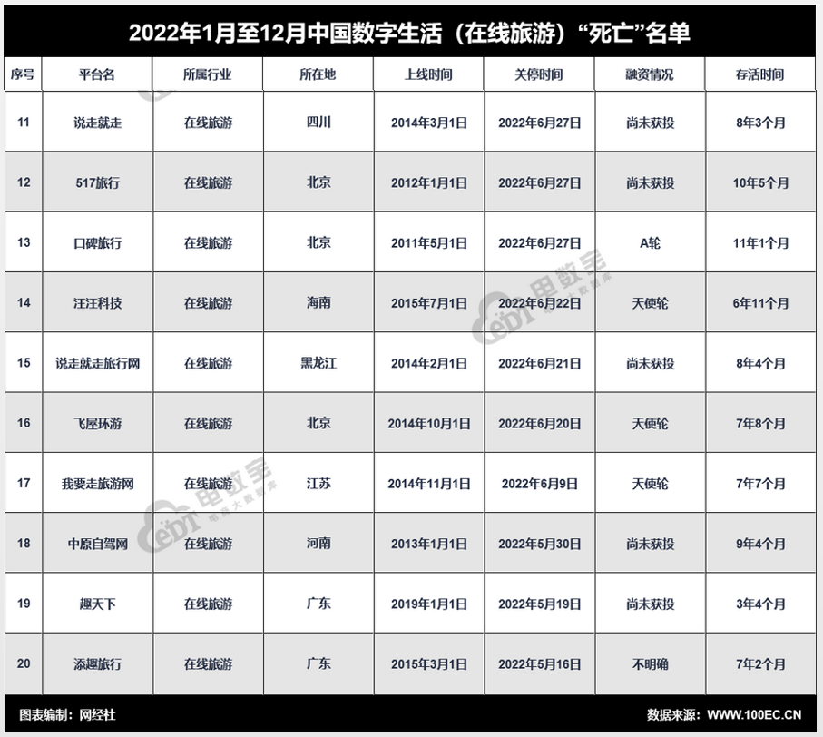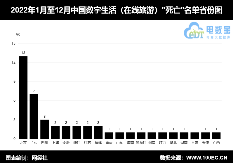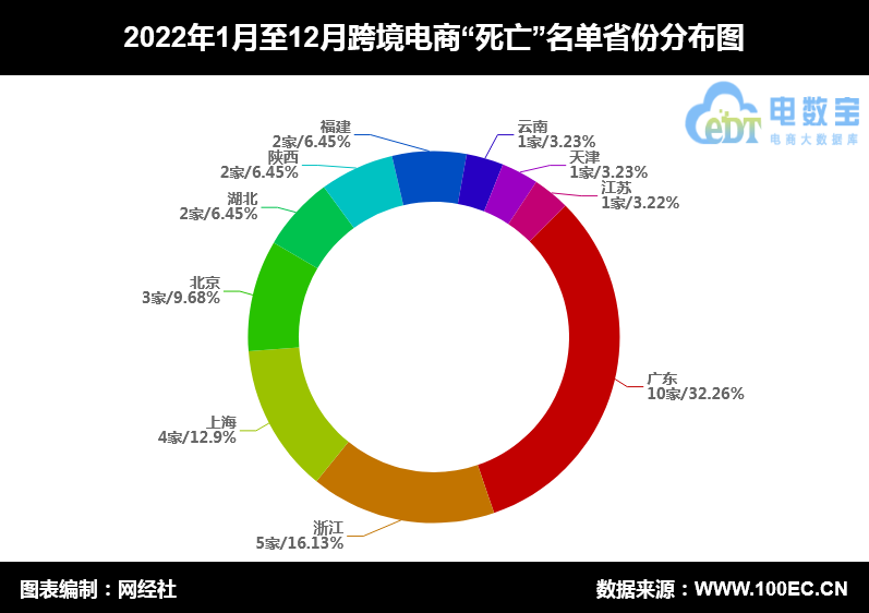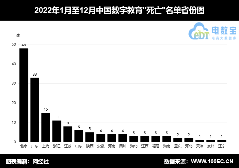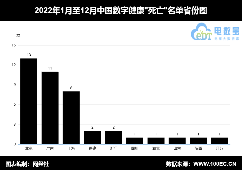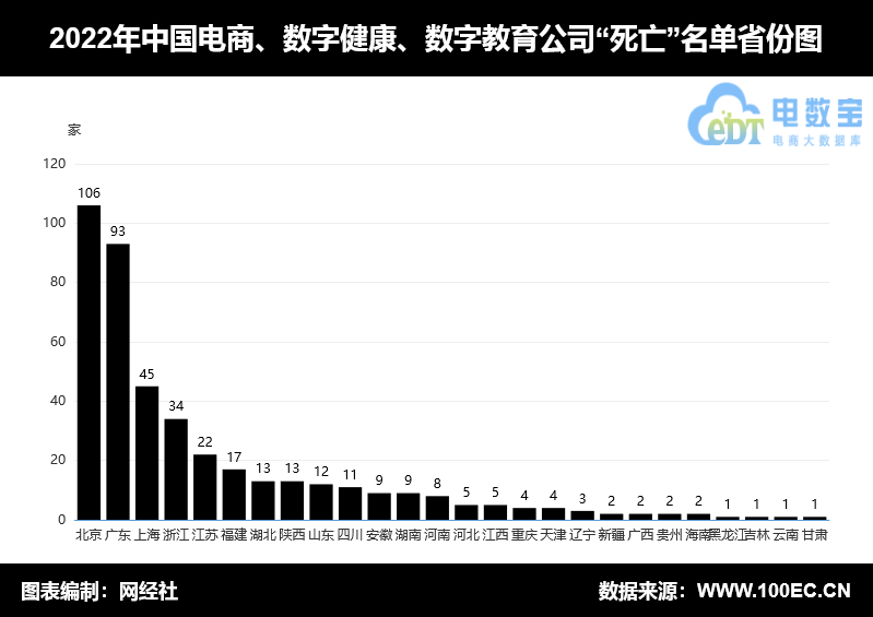 “死亡”公司的省份分布上,排名前十的依次为:有北京106家,广东93家,上海45家,浙江34家、江苏22家、福建17家、湖北13家、陕西12家、山东12家、四川11家。