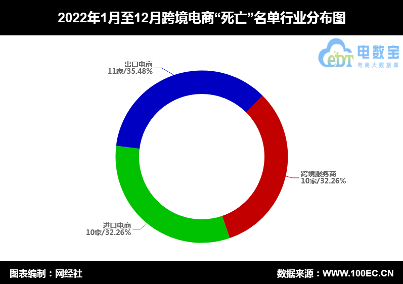 行业分布上,占比较为均衡。其中:出口电商11家、进口电商10家、跨境电商服务商10家。