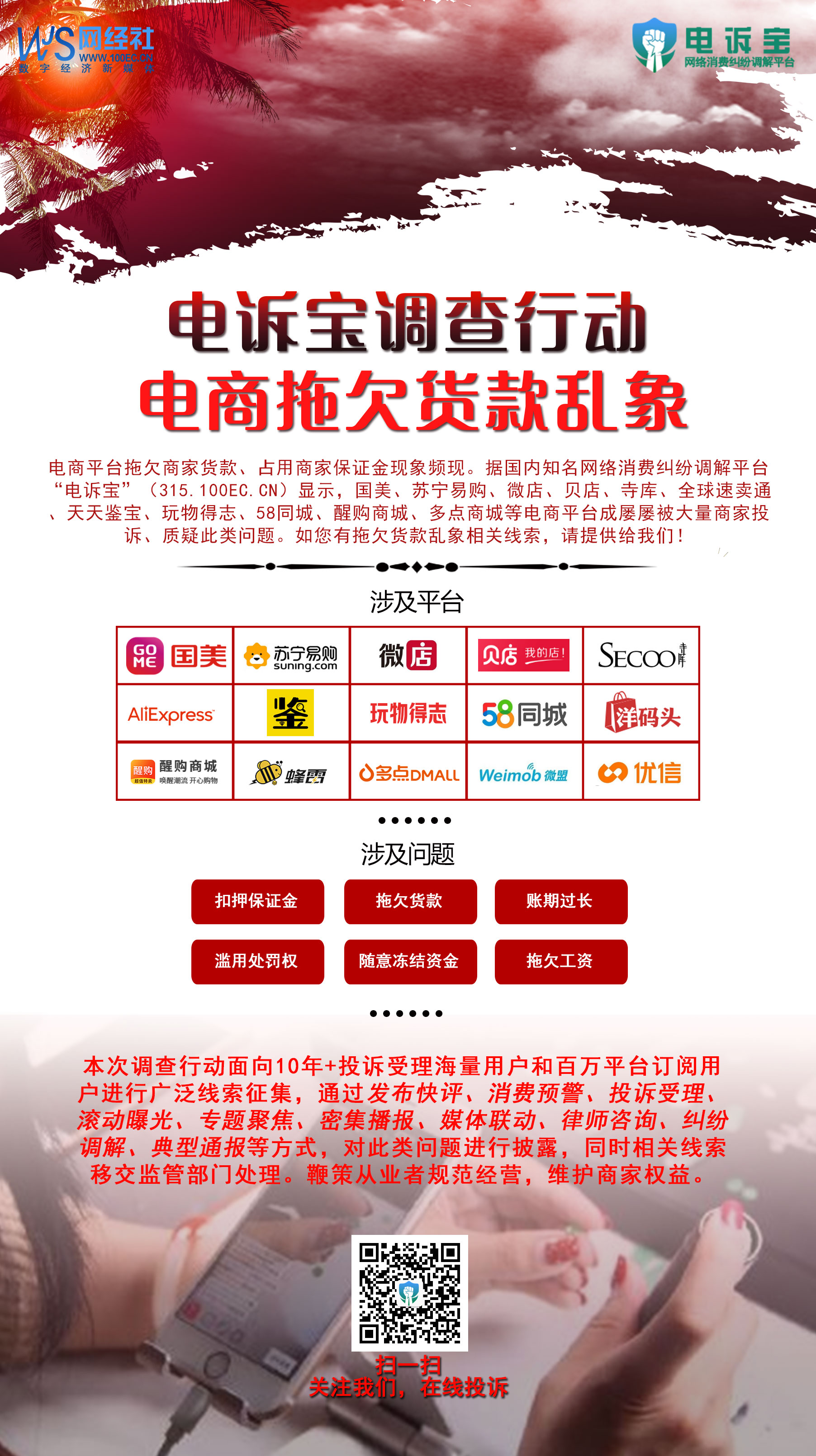9月20日,国务院总理李强主持召开国务院常务会议,审议通过《清理拖欠企业账款专项行动方案》。会议指出,“解决好企业账款拖欠问题,事关企业生产经营和投资预期,事关经济持续回升向好,必须高度重视。”此外,今年4月中央政治局会议也提出“要下决心从根本上解决企业账款拖欠问题”。为此,电诉宝启动“电商拖欠货款调查行动”,分析拖欠货款、占用保证金乱象。如果您也遇到相关问题,欢迎向我们提供线索。