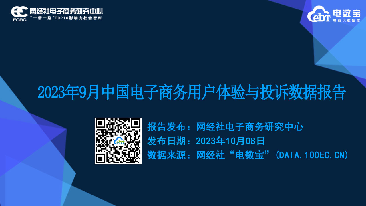 【报告名称】:《2023年9月中国电子商务用户体验与投诉数据报告》