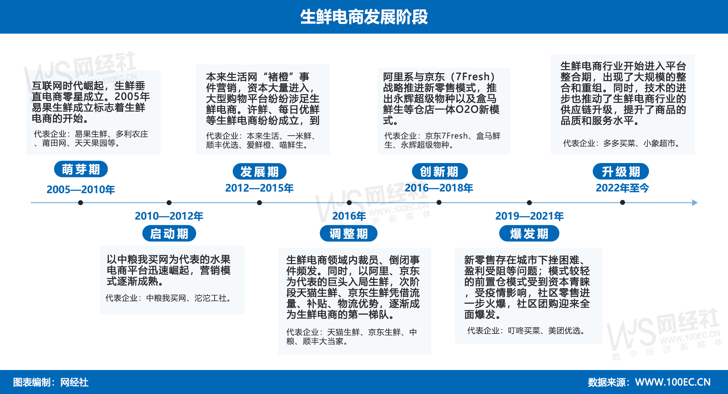 《2023年中国生鲜电商“二十强榜”》发布,包括:叮咚买菜、京东到家、小象超市、本来生活、盒马、多点、朴朴超市、T11、食行生鲜、生鲜传奇、菜划算、猪行鲜生、美团优选、多多买菜、兴盛优选、搜农坊、筐鲜生、观妙科技、康多鲜、飞熊领鲜(排名不分先后)。