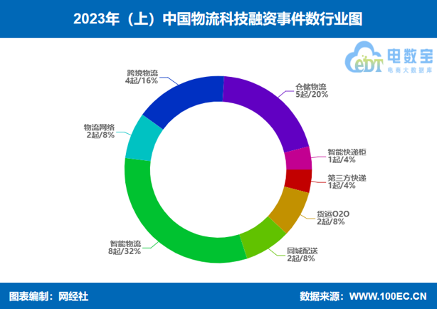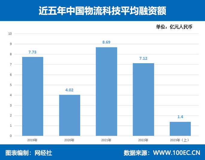 据网经社“电数宝”电商大数据库显示,2023上半年中国物流科技共发生25起融资,融资总额约为30.2亿元,平均融资额为1.4亿元,同比下降408.6%。