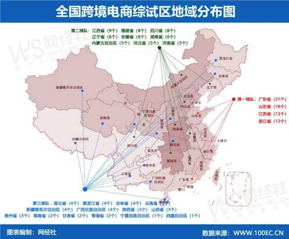第一梯队:广东省(21个)、山东省(16 个)、江苏省(13个)、浙江省(12个);