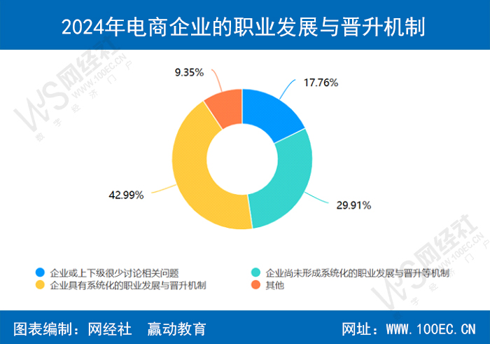 企业具有系统化的职业发与晋升机制的占比42.99%,比2023年53%的数据有所下降