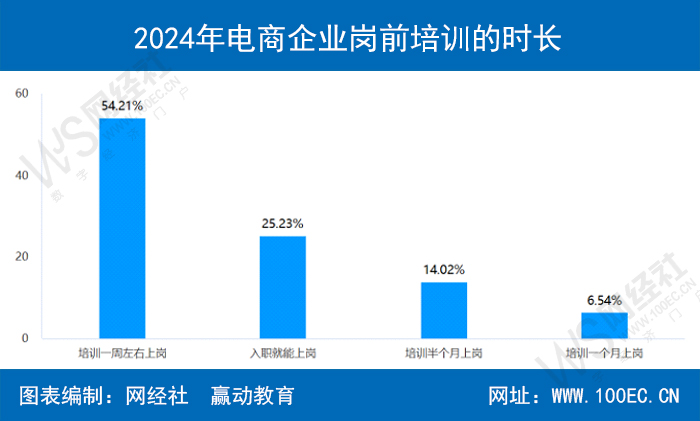 数据解读:被调研企业样本中,企业岗前培训时长大多为培训一周上岗,说明电商的上岗门槛并不高,说明电商岗位已经标准化、流程化,标志着电商行业已经进入成熟期。