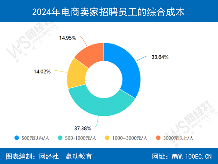 各企业在招聘员工方面所付出的综合成本区间段中,企业在招聘员工方面所付出的综合成本在1000元以内的,占比达71.02%,2023年这一数据是64%。