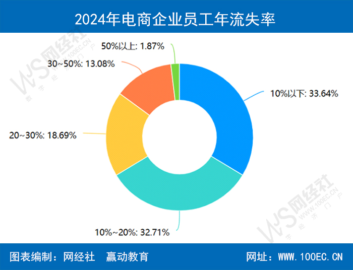 数据解读:从调查数据来看,电商企业人员招聘最核心的三个压力分别为人员招聘,人员流失,薪酬增长压力。在当下普遍求职困难,招聘岗位稀缺的环境下,高需求、高流失的人员现状,也是和零售业“卷王”的名号相匹配。