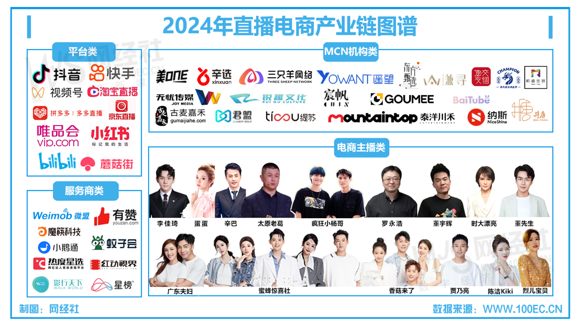 2.MCN类:美腕、辛选、遥望科技、东方甄选、交个朋友、谦寻、无忧传媒、锐趣文化等;