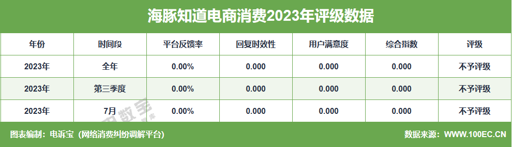 据网经社旗下电商大数据库“电数宝”监测数据显示,2023年“海豚知道”共获得3次消费评级,均为“不予评级” 。