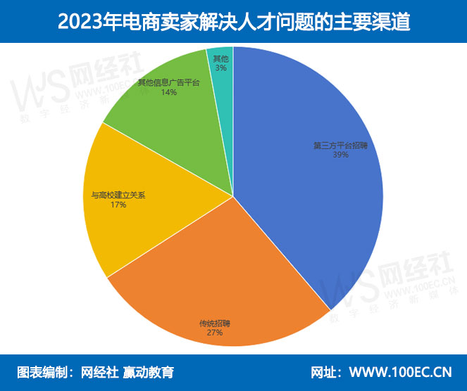 被调研企业样本中,招聘人才的渠道比较丰富,传统招聘网站、专业第三方人力资源服务商、高校直招是电商企业人才来源的主要渠道。