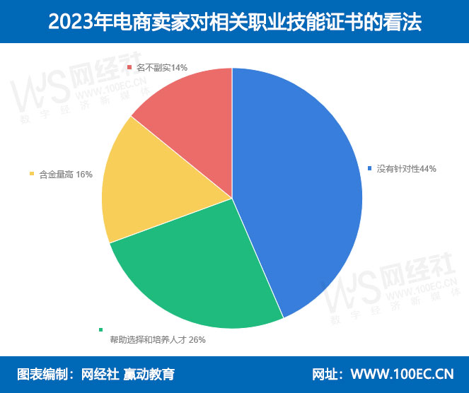 企业对电子商务相关职业技能证书的看法分为两个方面,一部分认为可以帮助选择人才,另一部分认为没有特别针对性。
