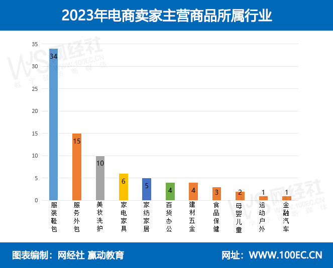 被调查企业中,企业主营商品所属行业的占比超过一半集中在服装鞋包和服务外包,占比达58%