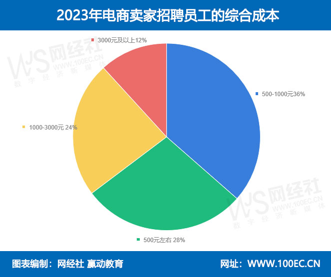 被调研企业样本中,企业在招聘员工方面所付出的综合成本控制在1000以内,说明企业招聘渠道高效,流程精简,供需平衡,电商行业进入稳定速发展阶段。