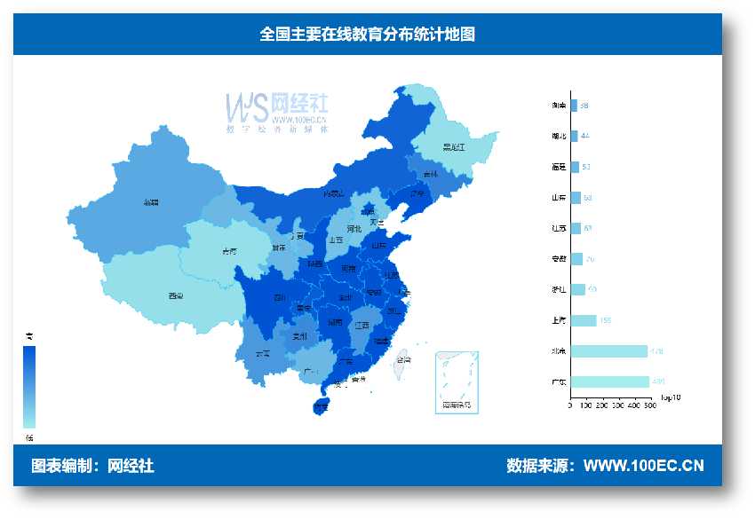 据网经社企业库收录显示,数字教育规上公司分布地为:广东(489家)、北京(478家)、上海(159家)、浙江(90家)、安徽(76家)、江苏(63家)、山东(63家)福建(53家)、湖北(44家)、湖南(38家)。