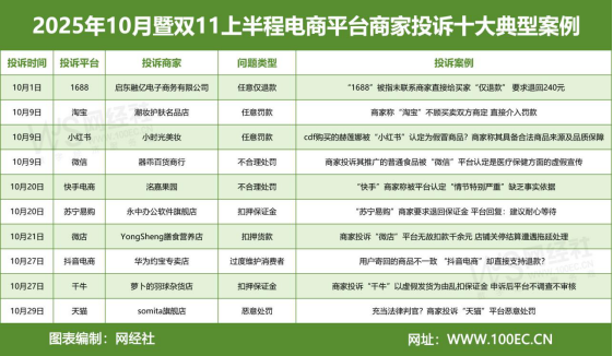 网经社:《2025年10月暨双11上半程电商平台商家投诉数据报告》发布