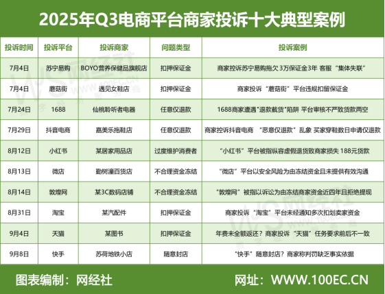 【报告名称】:《2025年Q3中国电商平台商家投诉数据报告》