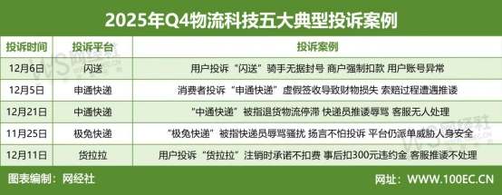 在物流科技消费领域,据“电诉宝”受理用户维权案例,我们从中选取五大典型投诉案例,涉及闪送、申通快递、中通快递、极兔快递、货拉拉。
