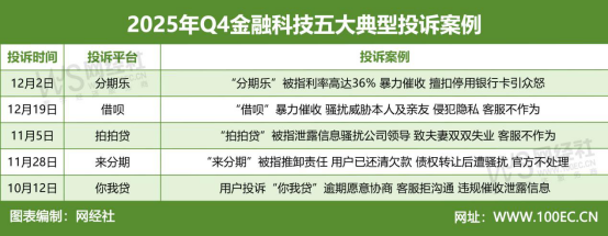 在金融科技消费领域,据“电诉宝”受理用户维权案例,我们从中选取五大典型投诉案例,涉及分期乐、借呗、拍拍贷、来分期、你我贷。