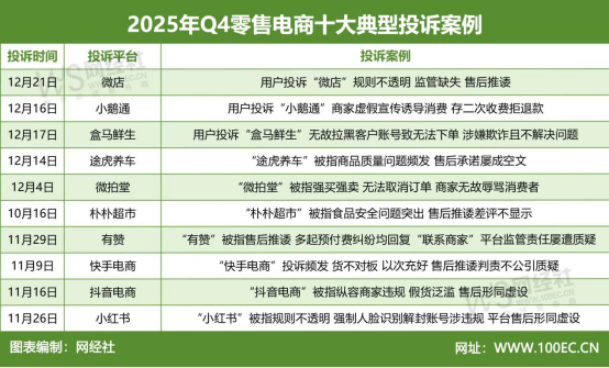 【315通报】Q4零售电商投诉榜、评级榜数据与十大典型投诉案例