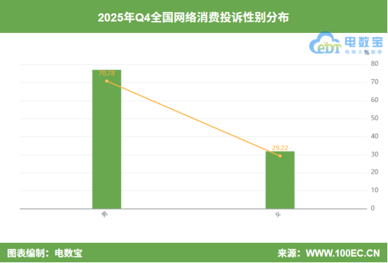 据“电诉宝”显示,Q4男性用户投诉比例为70.78%,女性用户投诉比例为29.22%。