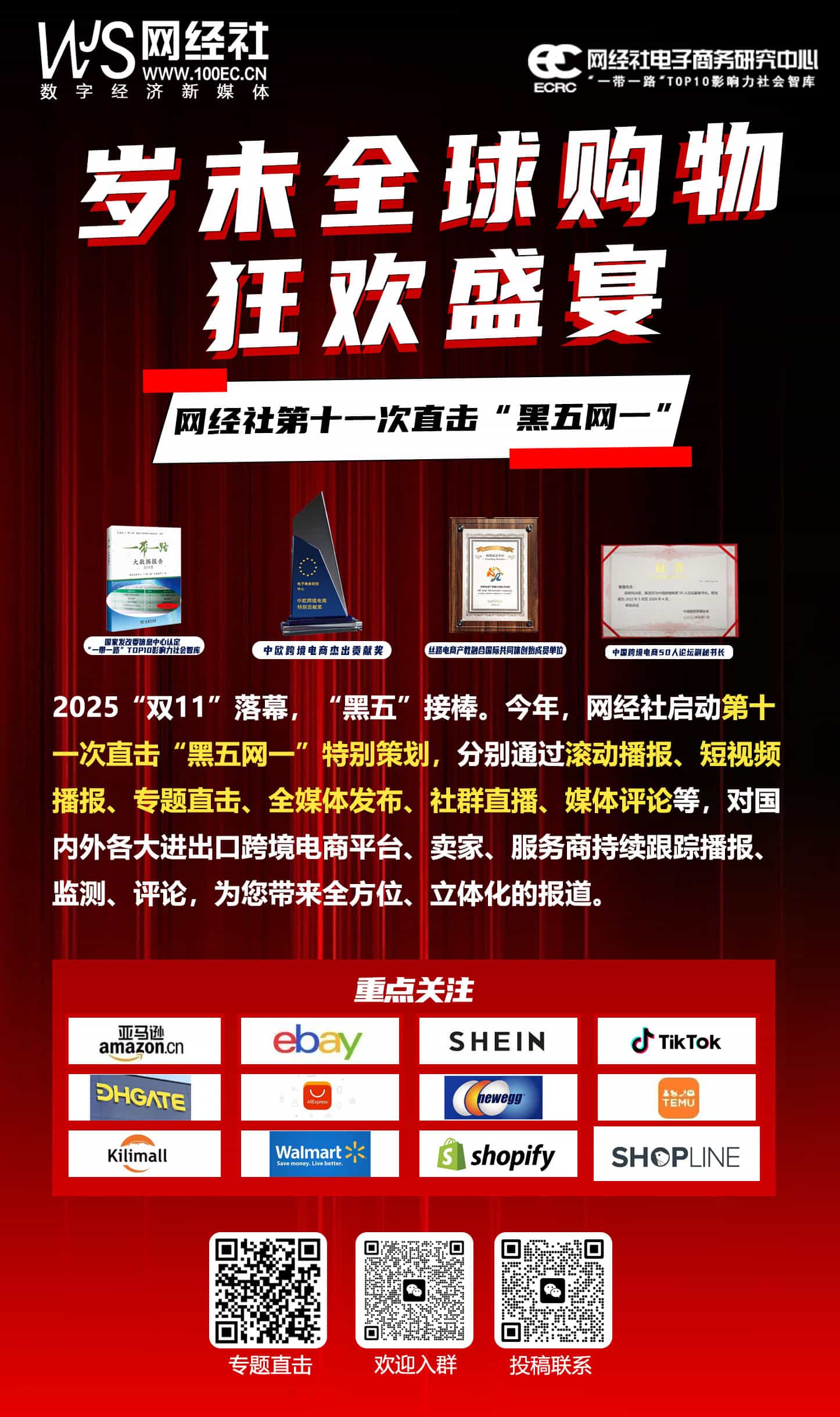 2025“双11”落幕,“黑五”接棒。今年,网经社启动第十一次直击“黑五网一”特别策划,分别通过滚动播报、短视频播报、专题直击、全媒体发布、社群直播、媒体评论等,对国内外各大进出口跨境电商平台、卖家、服务商持续跟踪播报、监测、评论,为您带来全方位、立体化的报道。