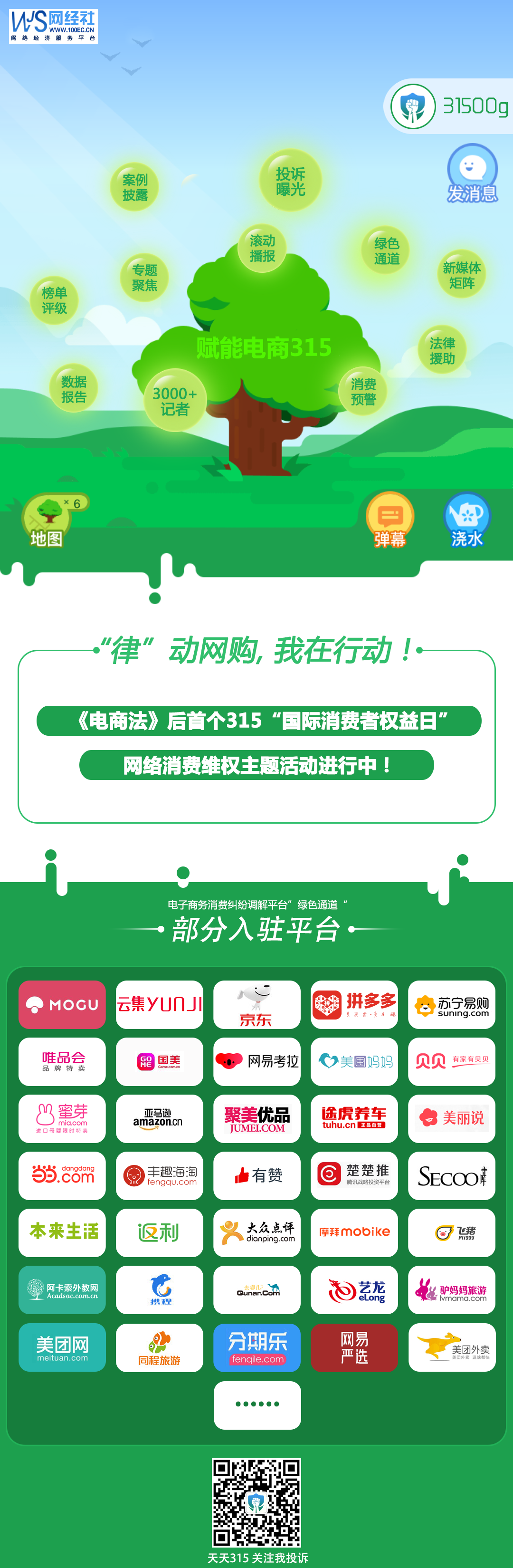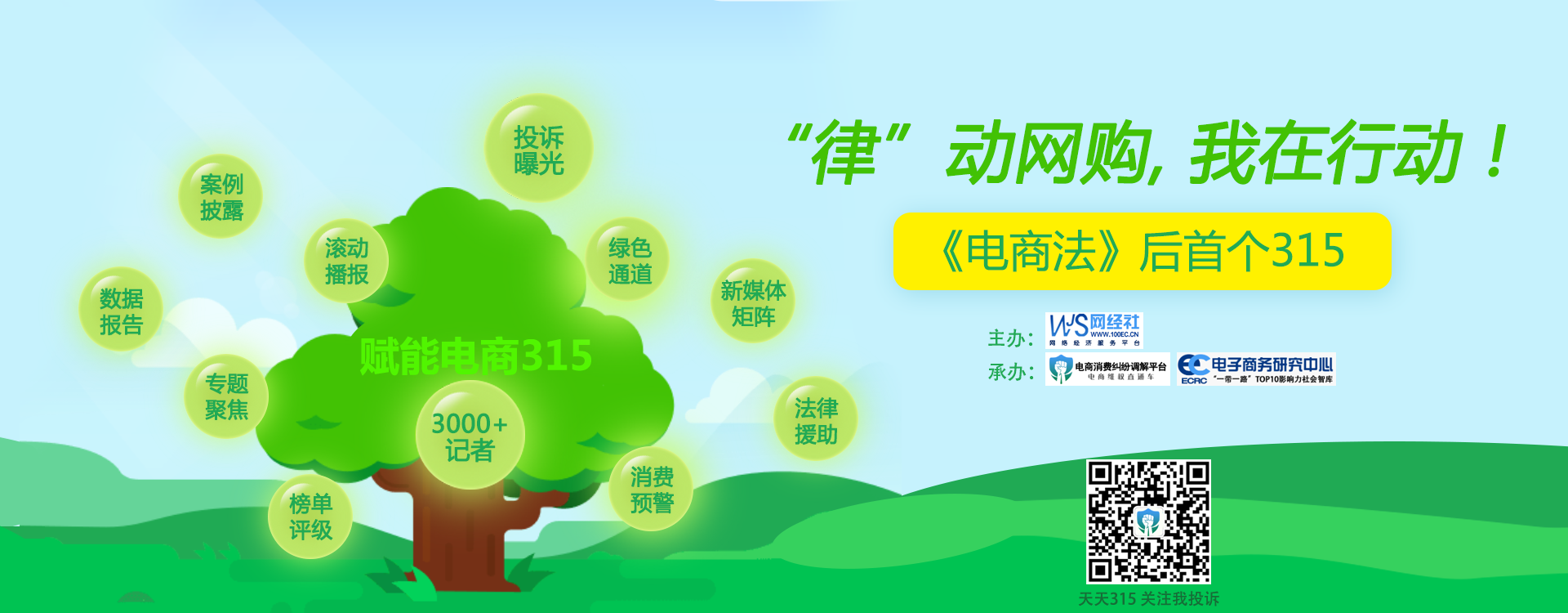 今年是《电子商务法》正式实施的第一年,网络消费有了专属的法律保护。为此,网经社旗下电子商务研究中心携手电子商务消费纠纷调解平台发起主题为“‘律’动网购,我在行动!”的“3·15”大型主题活动,通过报告发布、榜单评级、案例披露、投诉曝光、绿色通道、法律援助、消费预警、专题聚焦、滚动播报、全媒体矩阵等多种形式,与数十位律师团、数百家电商、3000+注册媒体记者联动,开展公益维权和提供法律服务,对网络消费维权难点、热点和相关平台点名鞭策。