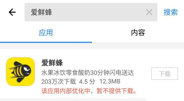 9月4日,有消息称,社区电商平台爱鲜蜂疑似停止运营,已下载的应用内页面显示空白状态。且小米应用、应用宝、苹果应用商店等已搜索不到爱鲜蜂APP,疑似被各大应用商店下架,甚至官网给出的APP下载二维码也显示无法打开网页,而原因未知。