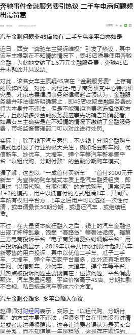 此外,网经社-电子商务研究中心特约研究员、北京盈科(杭州)律师事务所方超强认为,目前市面上的二手车电商平台,其模式基本如下:一方面以类似“能卖出好价钱”、“能快速拿到钱”等噱头,吸引车主到自己平台上卖车;另一方面,又以“专业检测、诚信可靠”、提供金融工具“一成首付”等噱头,吸引消费者到平台上卖车。这个中环节,二手车电商平台自始至终都不曾是二手车的产权人,收取的也是服务费。