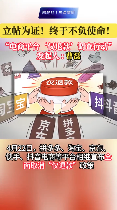 “电商平台‘仅退款’调查行动”发起人曹磊:立帖为证!终于不负使命!