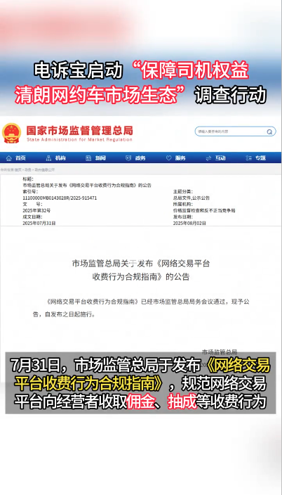 7月31日,市场监管总局于发布并施行《网络交易平台收费行为合规指南》,规范网络交易平台向平台内经营者收取佣金、抽成等收费行为。8月15日,各网约车平台企业纷纷发布公告,推出降低抽成比例等司机权益保障计划的相关措施
