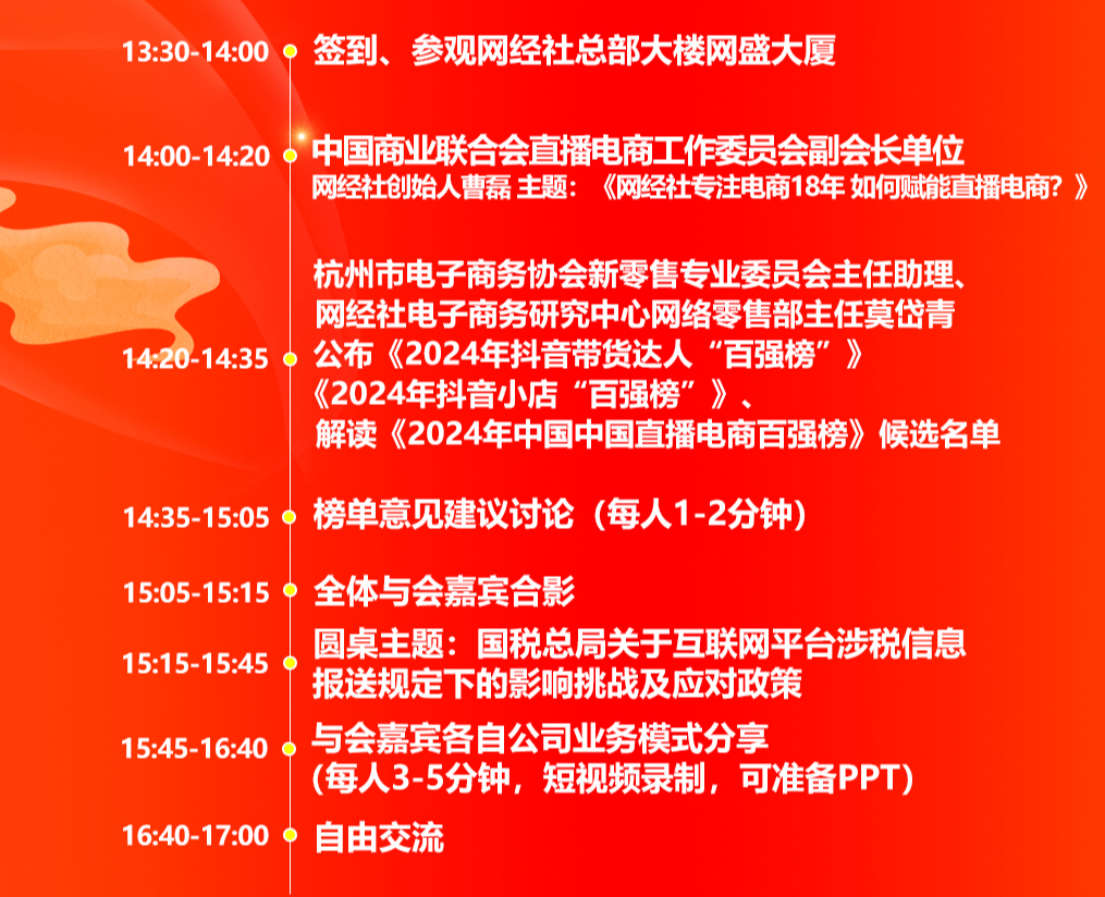 在此背景下,中国商业联合会直播电商工作委员会副会长单位网经社将于2月24日下午举办2025直播电商税务合规茶话会,旨在打造一个稀缺、高端、精准的交流平台,促进直播机构与财务税务合规服务商的深度切磋。