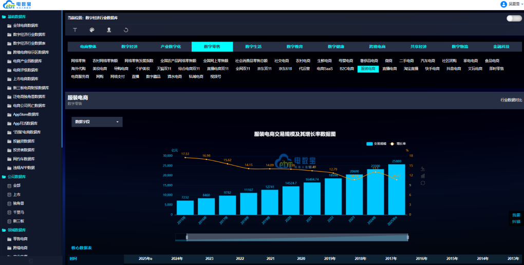 建设有服装电商数据库,覆盖近20年数据,拥有行业、投融资、上市公司财报等数据。 连续多年参与编写并发表《中国服装行业发展报告》服装电商章节,成为服装电商行业“风向标”。